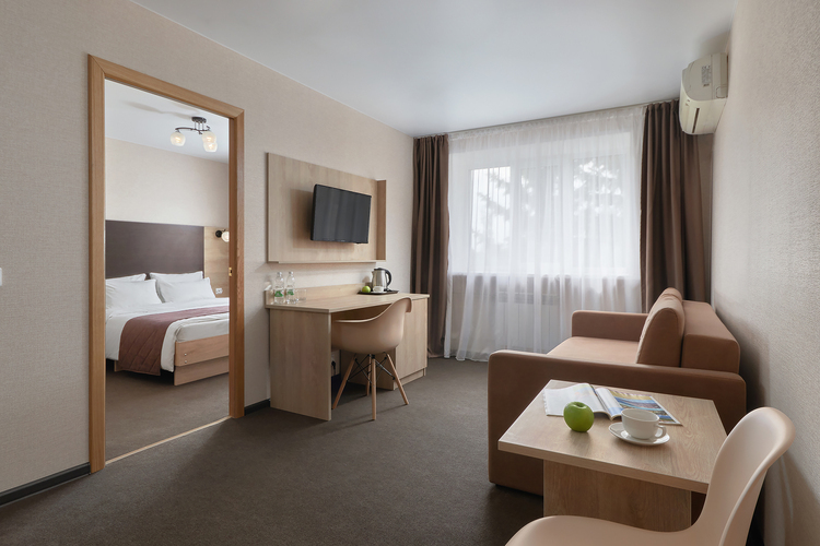 Двухкомнатные благоустроенные номера с декоративным ремонтом. В номерах создана домашняя обстановка. Каждый номер состоит из спальни и гостинной.